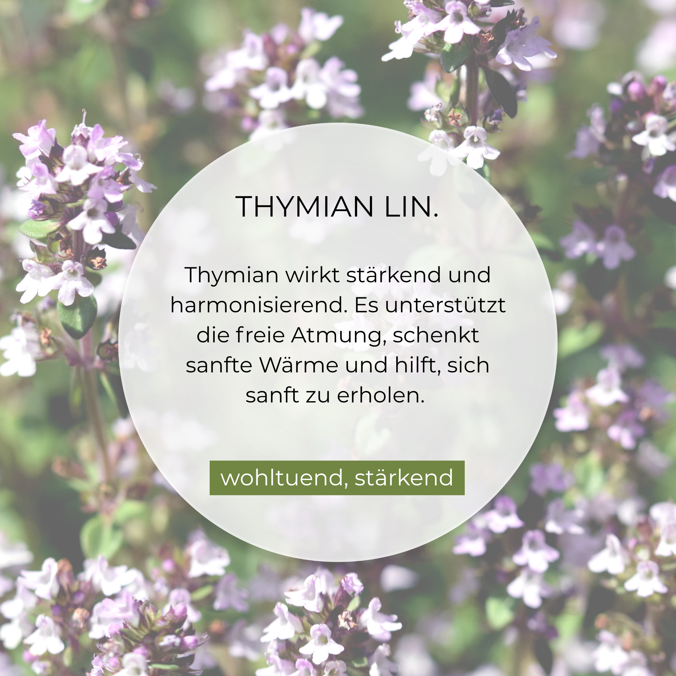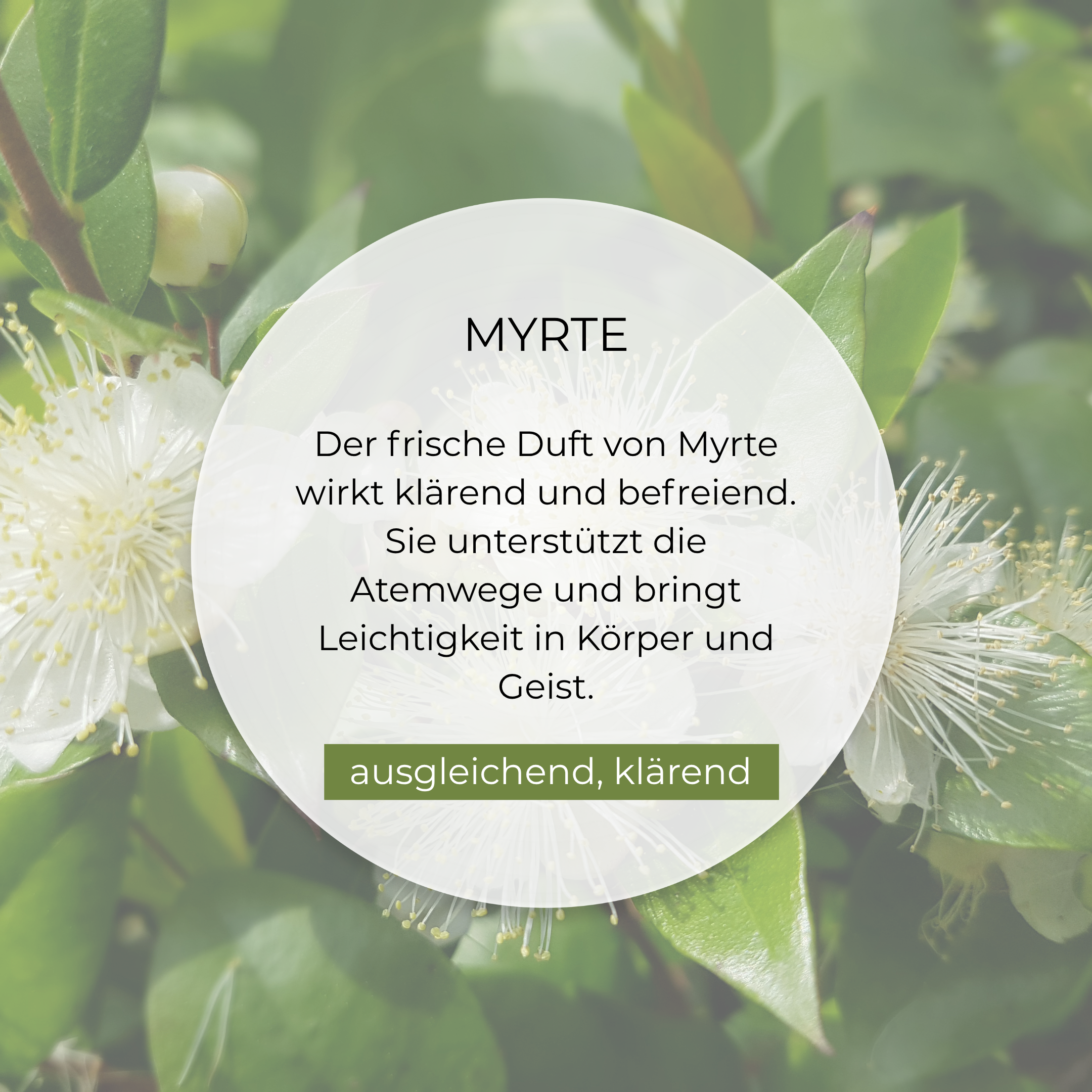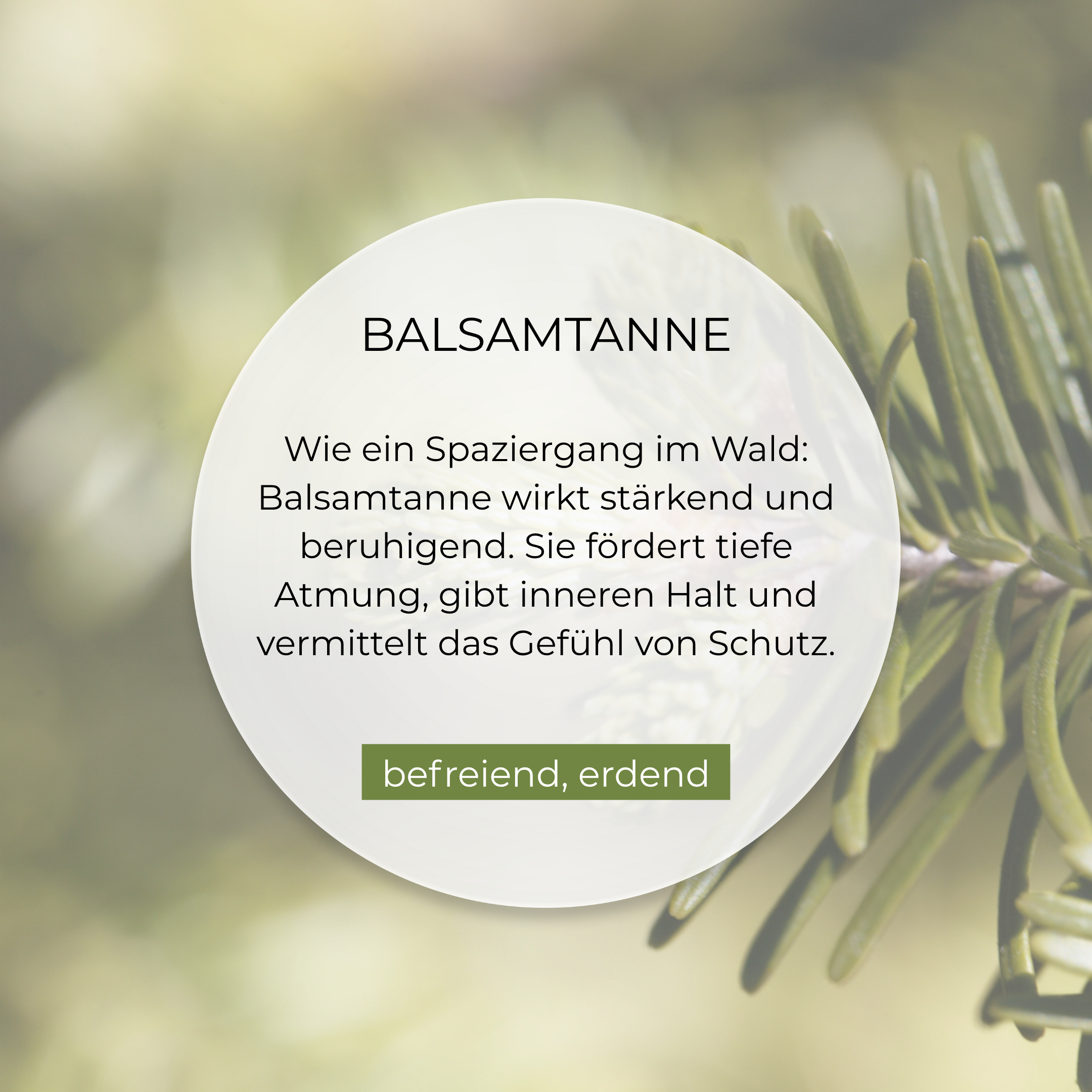 Die sorgfältig abgestimmte Duftkomposition aus Thymian Linalool, Myrte, Balsamtanne und einem Hauch Orange kann das Gefühl von freierem Atmen fördern und beruhigend wirken.