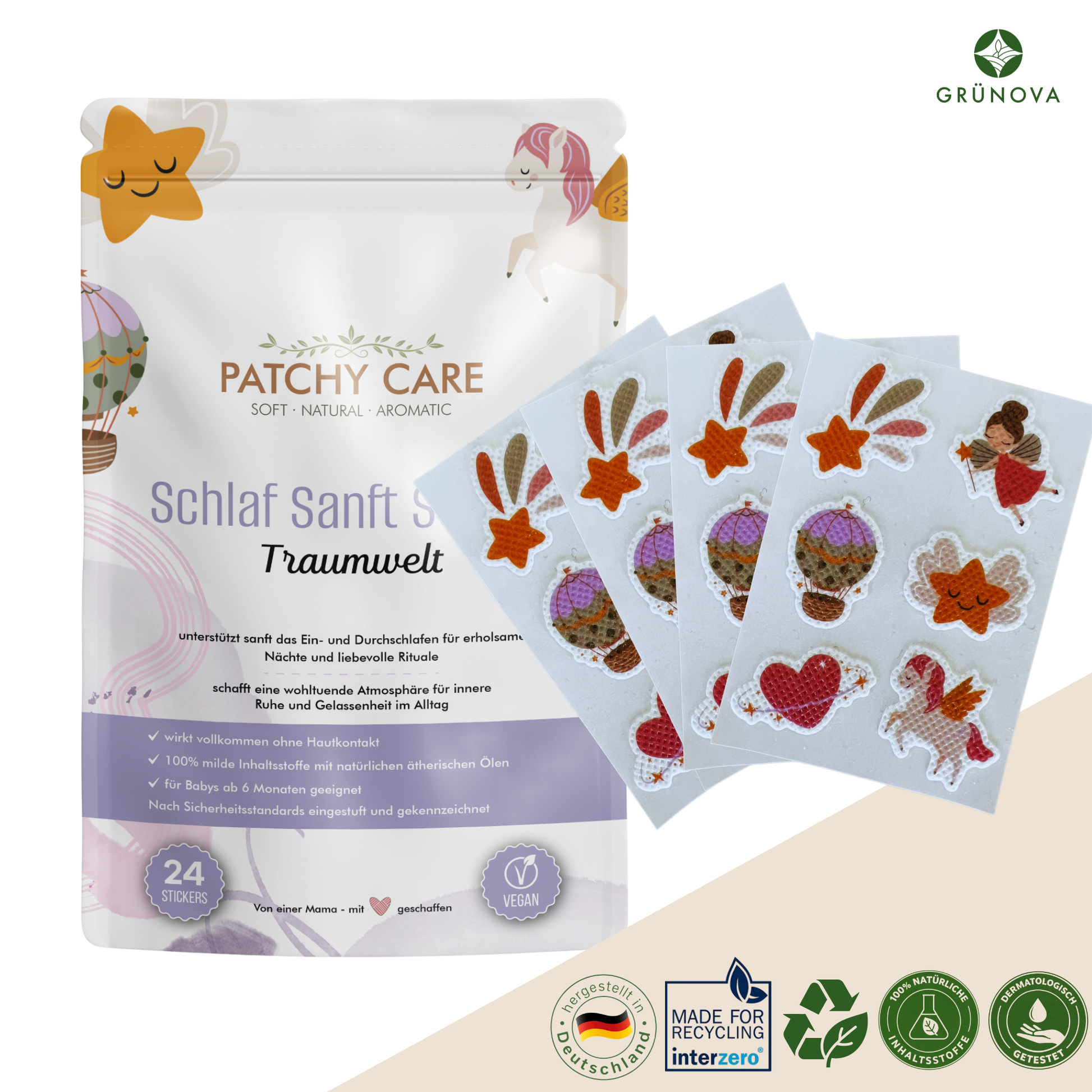 Die Duft-Patches von Grünova vereinen die Kraft ätherischer Öle für Kinder mit moderner, sicherer Anwendung. Ob als natürliche Schlafhilfe oder sanfte Erkältungshilfe – sie bieten Eltern eine einfache, nachhaltige Möglichkeit, das Wohlbefinden ihrer Kinder zu fördern.