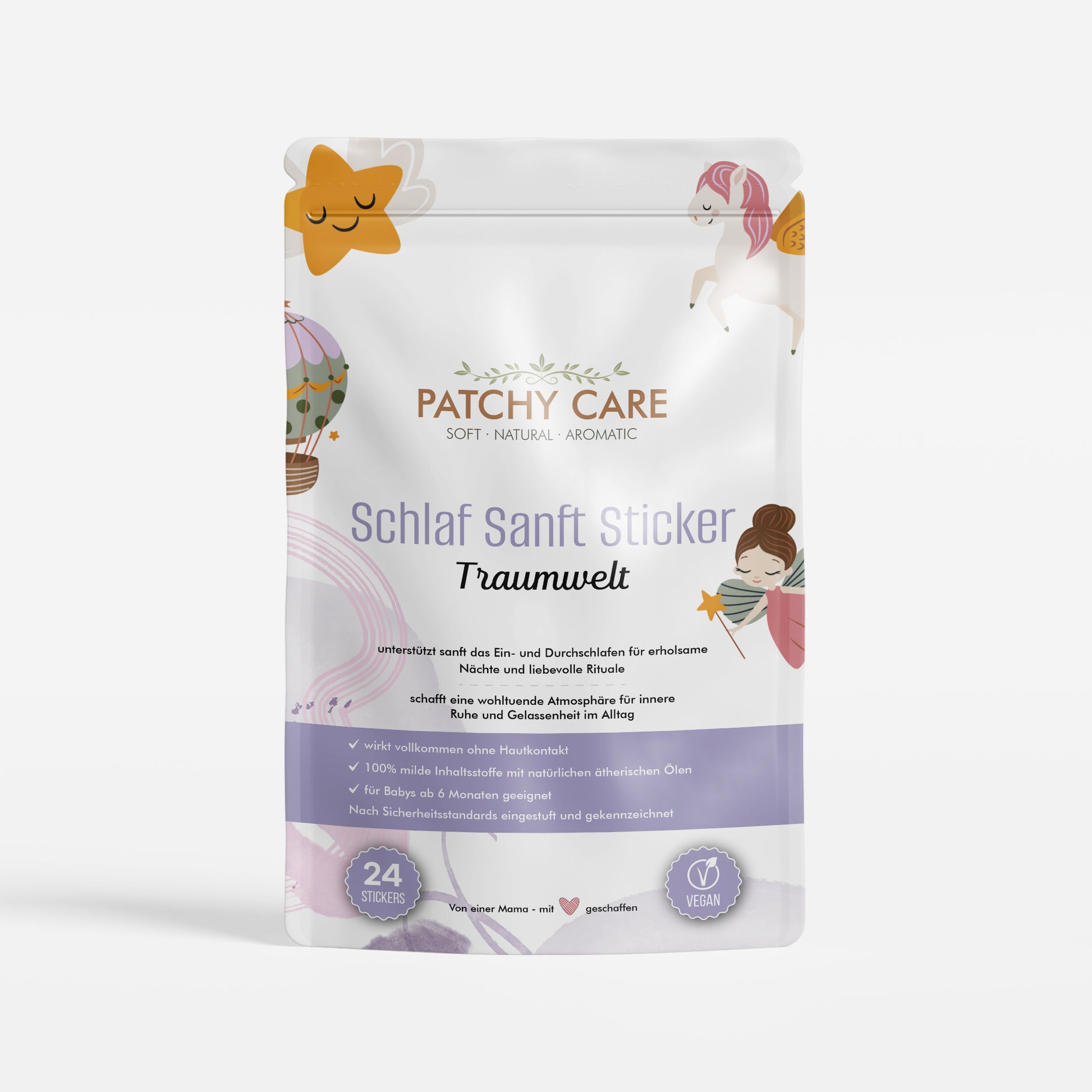 Unsere Schlaf Sanft Patches sind nicht nur für kleine Schlafmützen – auch müde Eltern können sich gern eine Portion Ruhe und Geborgenheit gönnen.